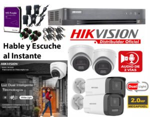 Kit 2 Cámaras Full Hd con Audio y Luz híbrida inteligente Hikvision 7204_kit2_audio
