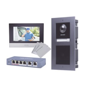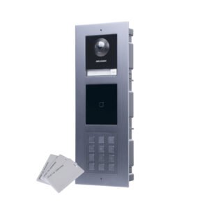KIT VIDEO PORTERO IP 2 MEGAPIXELES MULTIFAMILIAR LECTOR TARJETAS PARA APERTURA DE PUERTA HIKVISION DS-KIS602-M