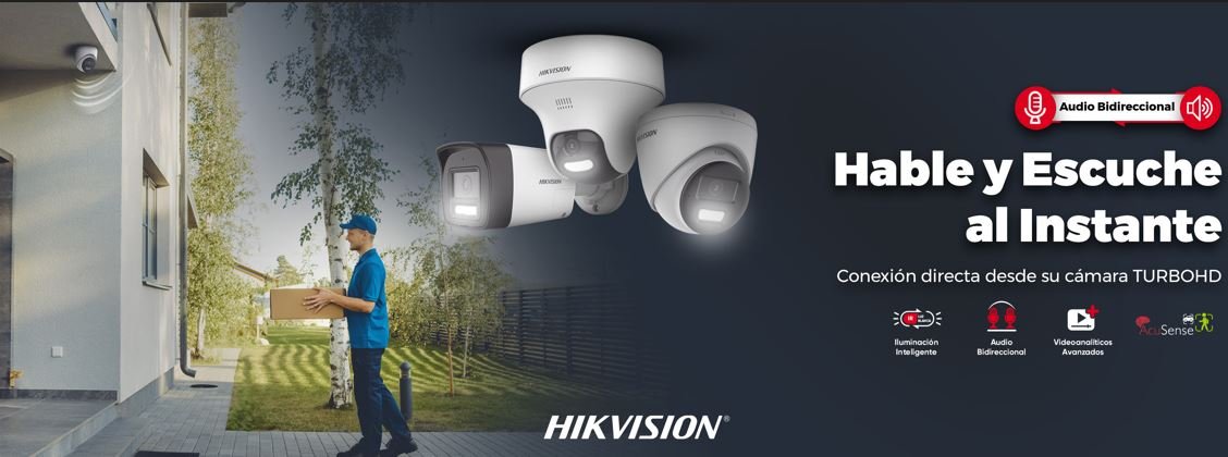 Soporta audio de dos vias por coaxitron (UTP o coaxial). Compatible con modelo de cámaras TURBOHD que soporten audio de dos vías. Podemos tener una comunicación desde la App Hik-Connect bidireccional hacia la cámara.