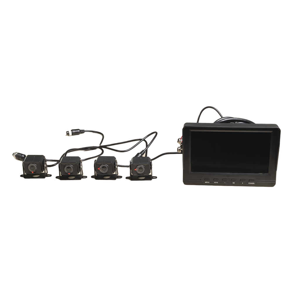 HIKVISION AE-VD2501A-A Kit de Monitoreo Local / 4 Cámaras 1080p para Exterior (IP68) y Pantalla LCD de 7″ a Color / Memoria Micro SD de 64 GB (Expandible a 512 GB) / Soporta Cambio de Cámara al Dar Reversa al Vehiculo / Accesorios de Instalación
