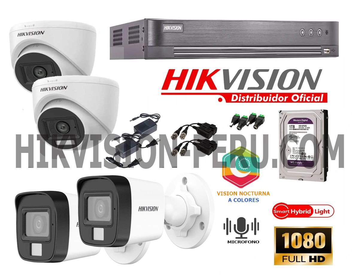 Kit de 4 Cámaras Full Hd con Audio con Luz híbrida inteligente Hikvision 7204_kit4_audio