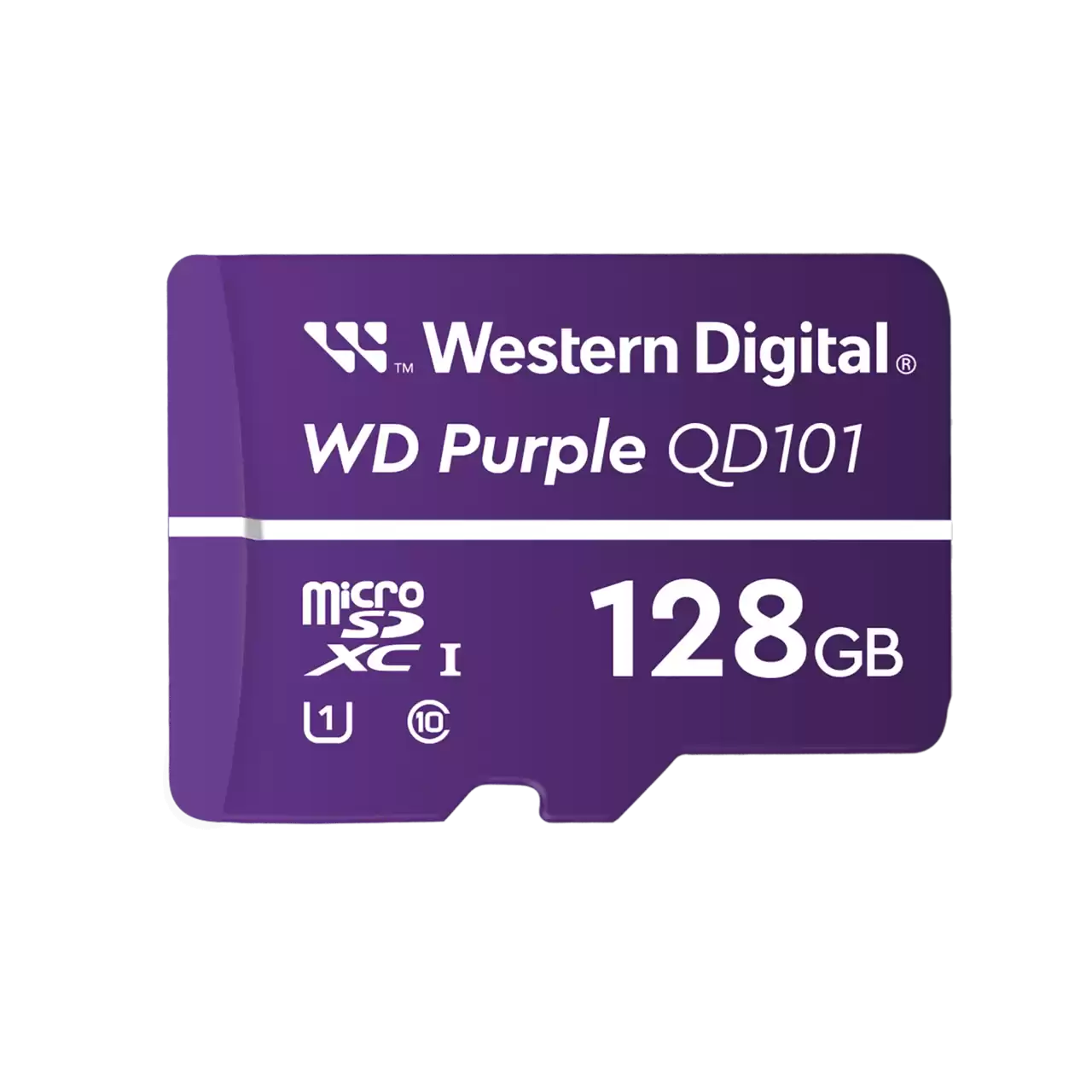 Memoria Flash WD Purple 128GB SC QD101 microSD, ideal para Camaras de videovigilancia.